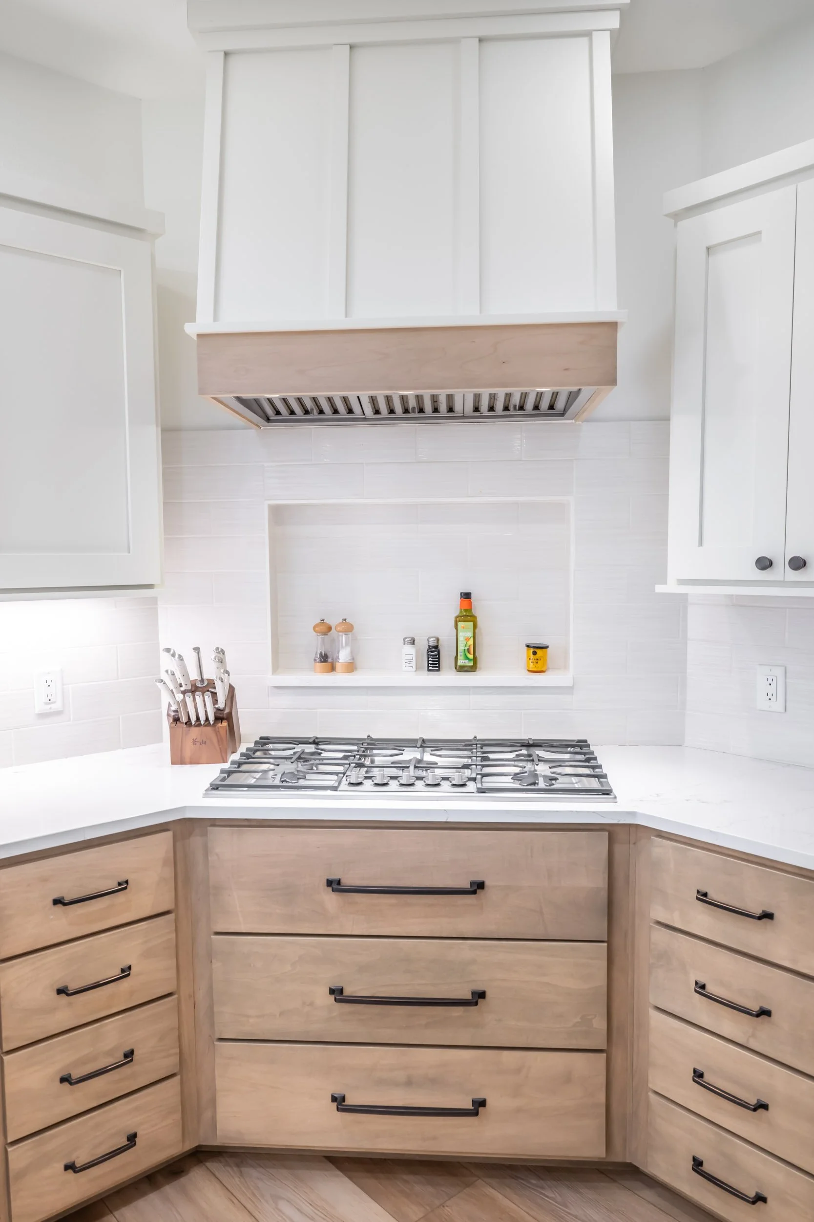 Kitchen perimeter countertops are Silestone in Ethereal Glow