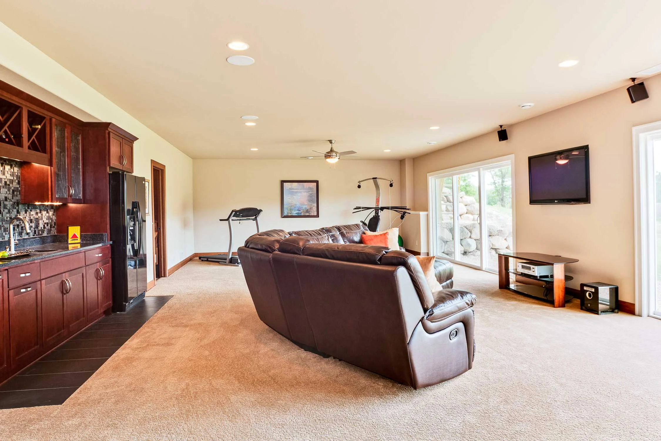 Much like upstairs living spaces, an open concept floor plan in your basement gives you the most flexibility.