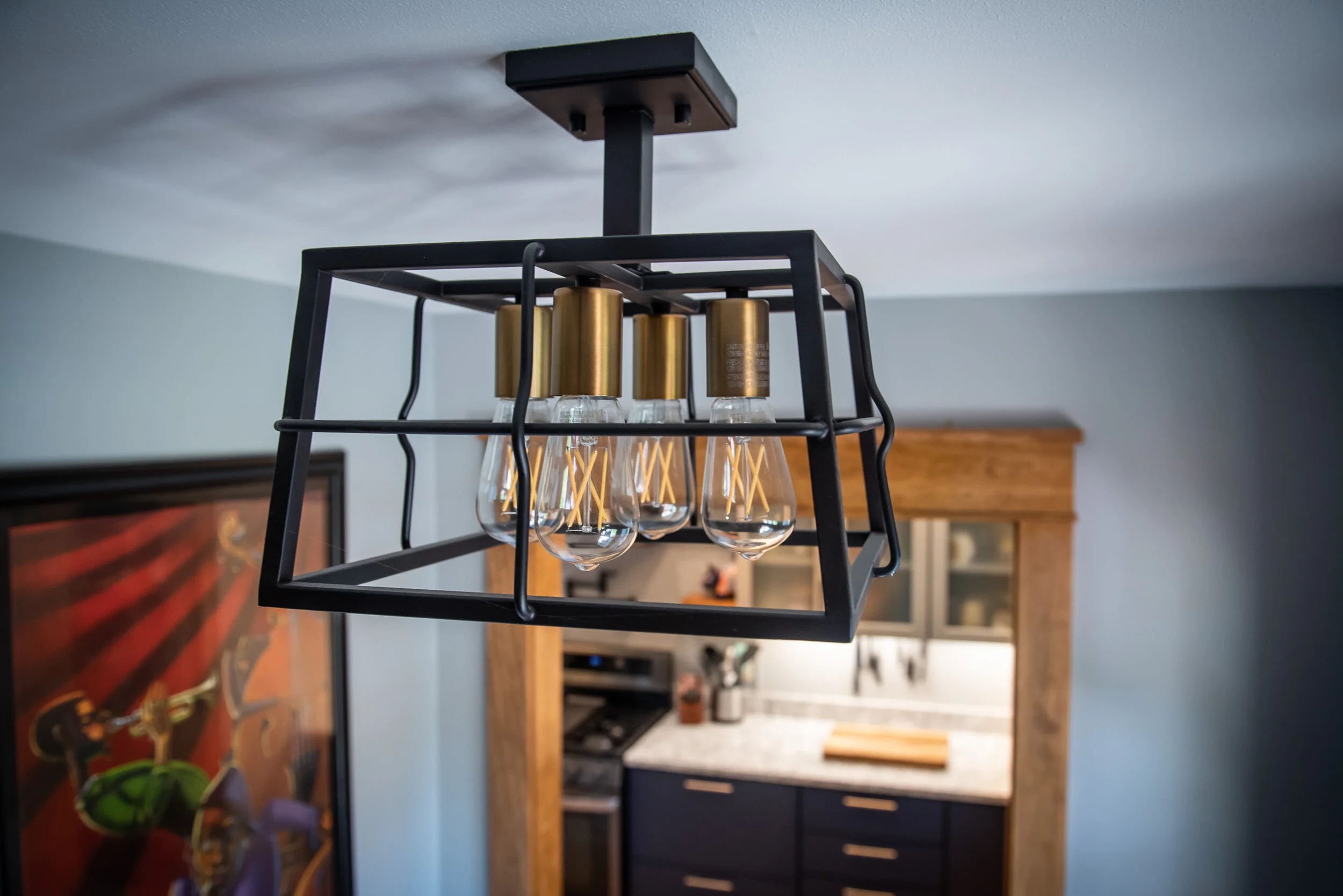 Our clients John and Amy are a professional couple with a love of dogs and old homes. They purchased this 100-year-old Craftsman bungalow in downtown DeForest, Wisconsin, as it met their primary needs for location, lifestyle, and beauty. One of the primary goals was a full kitchen remodel, upgrading the kitchen by creating a new design that remained partially closed off from the main living area. It needed to provide more cabinetry, a pantry, and more countertop space for food preparation. They also requested we eliminate the excessive number of doors in the kitchen. Our team designed a beautiful galley kitchen with a connection to a mudroom and a large opening to the dining room.